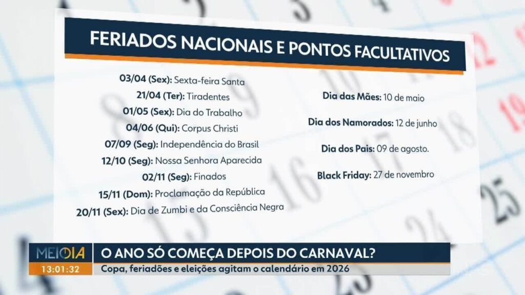 Em 2026, os brasileiros enfrentarão um calendário marcado por vários feriados caindo em dias úteis, além de eventos significativos como a Copa do Mundo e as eleições gerais. A combinação desses fatores promete influenciar o cotidiano dos cidadãos no próximo ano.