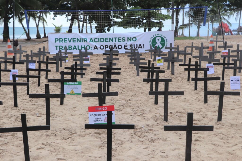 O Movimento Abril Verde realiza, nesta segunda-feira (6), a campanha “A Segurança do Trabalho pede Socorro” em Pajuçara, Alagoas. Com a instalação de mais de cem cruzes na orla, a ação visa alertar sobre a importância da segurança no ambiente de trabalho.