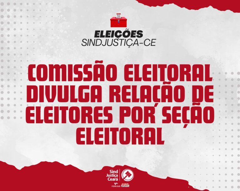 A Comissão Eleitoral do SindJustiça Ceará divulgou, neste sábado (31 de janeiro), o Normativo nº 03/2026, que apresenta a lista de filiados eleitores organizada por seção eleitoral. A definição dos eleitores considera os dados de lotação dos servidores, conforme informados pelo Tribunal de Justiça do Ceará (TJCE).