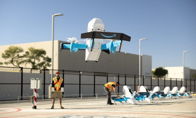 Desde 2023, a Amazon começou a utilizar drones para fazer entregas de medicamentos em College Station, Texas. A empresa tem como meta entregar 500 milhões de pacotes anualmente via drones até o final de 2030. Com isso, espera-se que a tecnologia de entrega por drones se torne parte integral de suas operações logísticas.