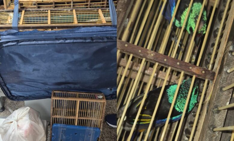 Homem é detido ao tentar levar 42 pássaros em mala no aeroporto